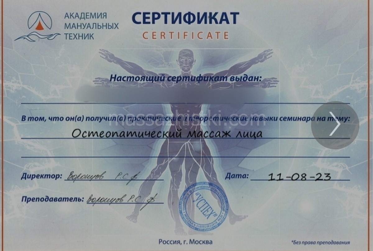 Профессиональный, действительно профессиональный, дипломированный мастер целебного массажа, есть более 100 массажных сертификатов и более 6000 приемов пациентов за 8 лет работы!